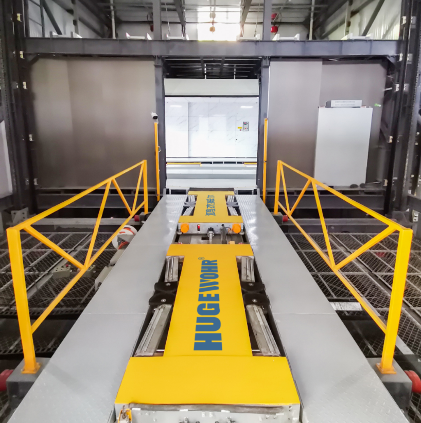 存車時,車主將車開進車庫,將車停在指定區(qū)域,根據(jù)語音提示拉緊手剎收好天線與反光鏡、關好車門,車主便可離開停車區(qū)。然后通過升降機的垂直上下運動和水平搬運,將車輛運送至所停放的車位層,再通過搬運機器人將車輛搬運至停車位上。